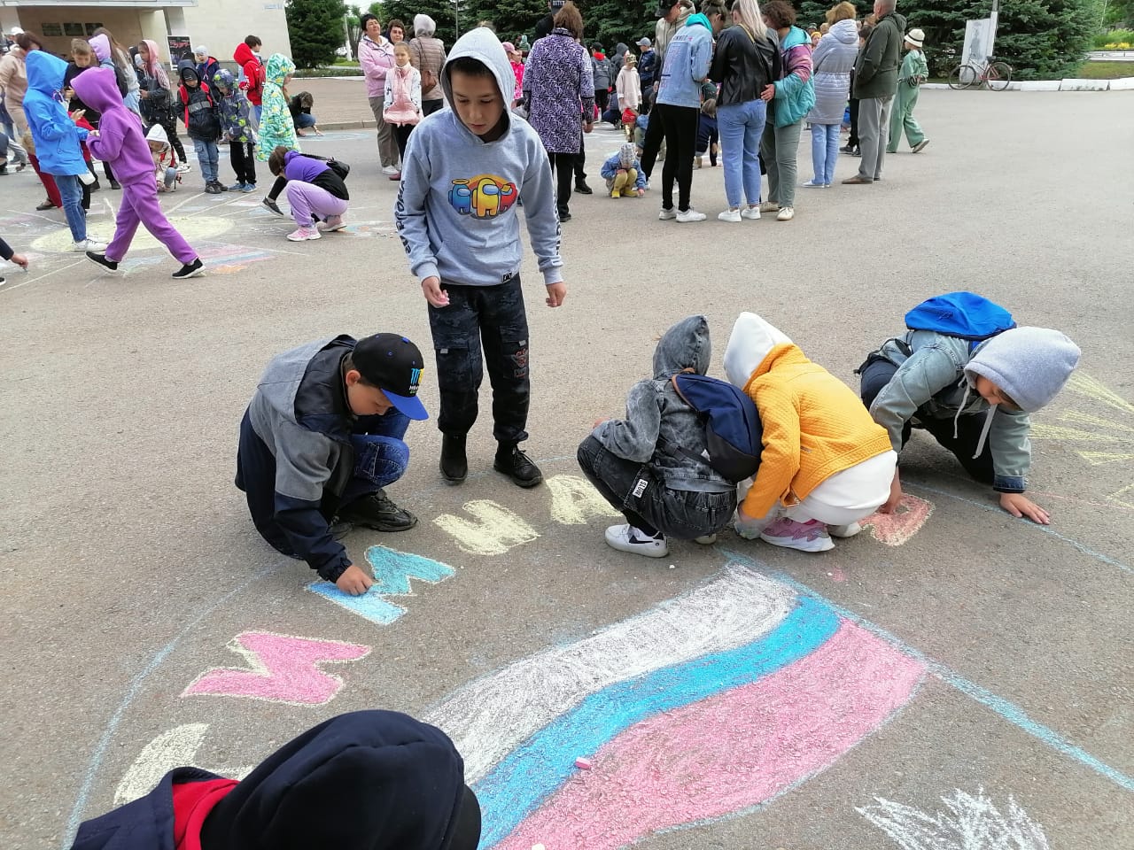 Для всех желающих был организован конкурс рисунков на асфальте «Моя Россия». Ребята раскрасили территорию центральной площади в разноцветные и позитивные сюжеты. Все дети с радостью поучаствовали в конкурсе и воплотили свои фантазии на асфальте, а, главное, показали всю свою любовь к своей Родине. Наши гимназисты получили грамоты и призы за победу в конкурсе.