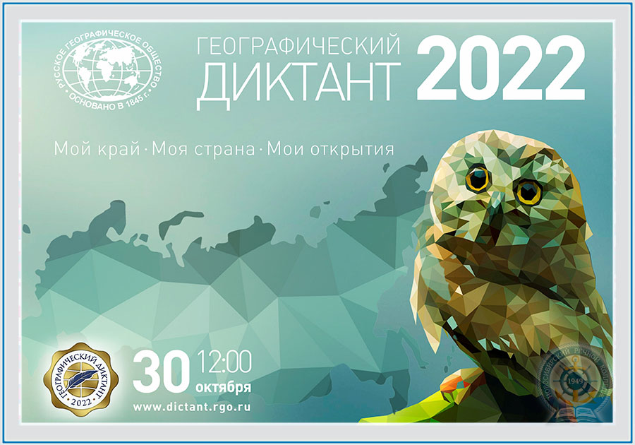 Восьмой по счёту Географический диктант РГО состоится 30 октября в России и за рубежом. Он будет проводиться очно и дистанционно на специально организованных площадках, а также онлайн — на сайте акции dictant.rgo.ru. На очных и дистанционных площадках диктант начнётся 30 октября в 12:00 по местному времени. Онлайн-версию диктанта можно будет пройти с 14:00 30 октября до 14:00 10 ноября по московскому времени.