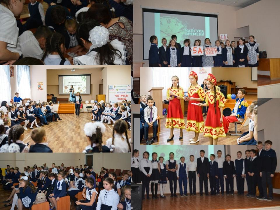 Ежегодно по традиции в гимназии проходят "Посвящение в первоклассники" и "Посвящение в пятиклассники". В мероприятии приняли участие театральный коллектив Дома пионеров и школьников "Рампа" на базе МБОУ гимназия (обучающиеся 6 класса) в качестве героев сказок. Проводили различные конкурсы. Также обучающиеся 11 классов вручили "Кодекс гимназиста" ленточки и памятные подарки.