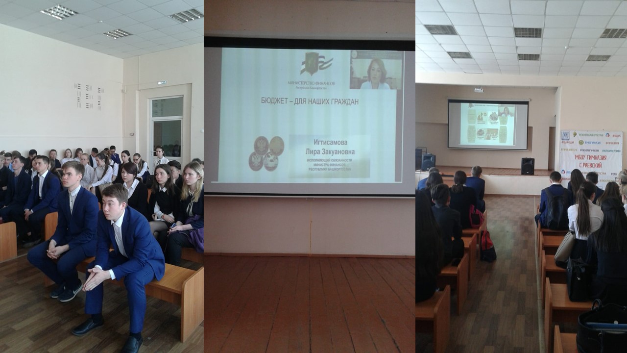 23 апреля 2019 года и.о. министра финансов Республики Башкортостан Игтисамова Лира Закуановна провела онлайн-урок по финансовой грамотности для старшеклассников на тему: "Бюджет - для наших граждан".