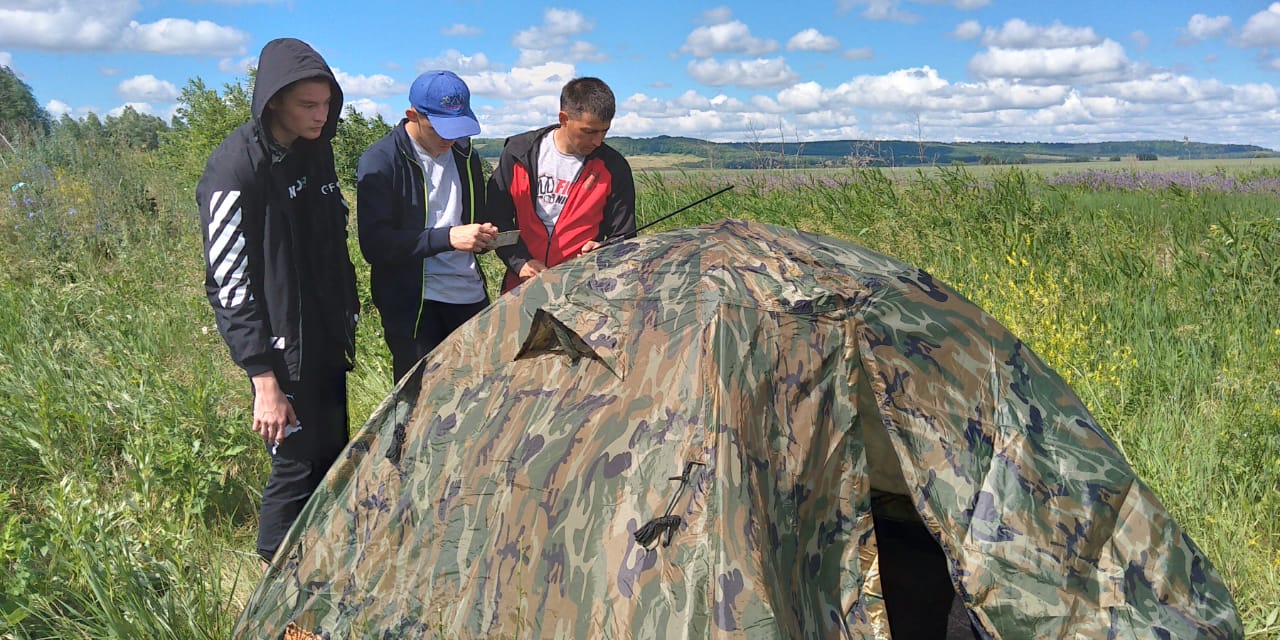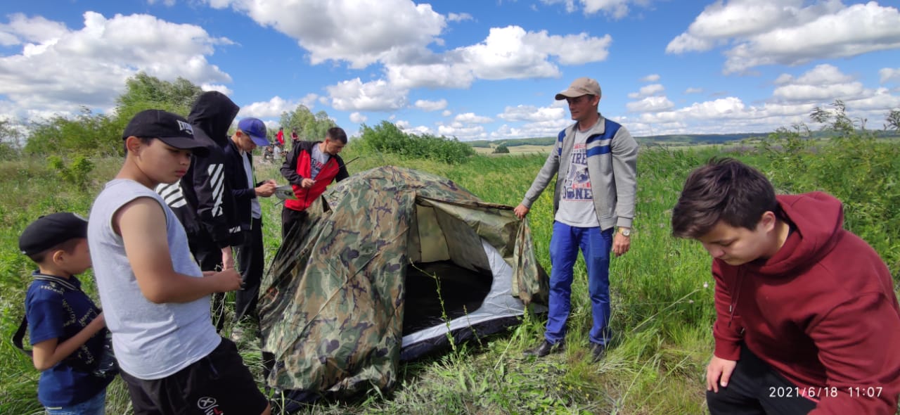 Лагерь "Олимпик" 18.06. День Туриста. Поход на Чудо - озеро, ловля рыбы на удочку, установка туристической палатки, подготовка к соревнованиям по туризму.