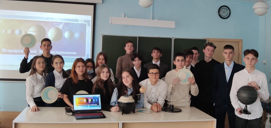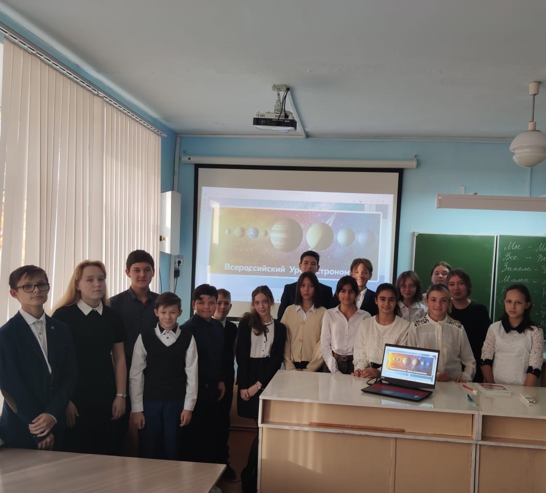 В гимназии с.Раевский прошел Всероссийский урок астрономии для учащихся 7, 8, 9, 10 и 11 классов. Цель урока – привлечь внимание детей к изучению одной из старейших наук – астрономии. Тема урока – Планеты Солнечной системы и наша Галактика.