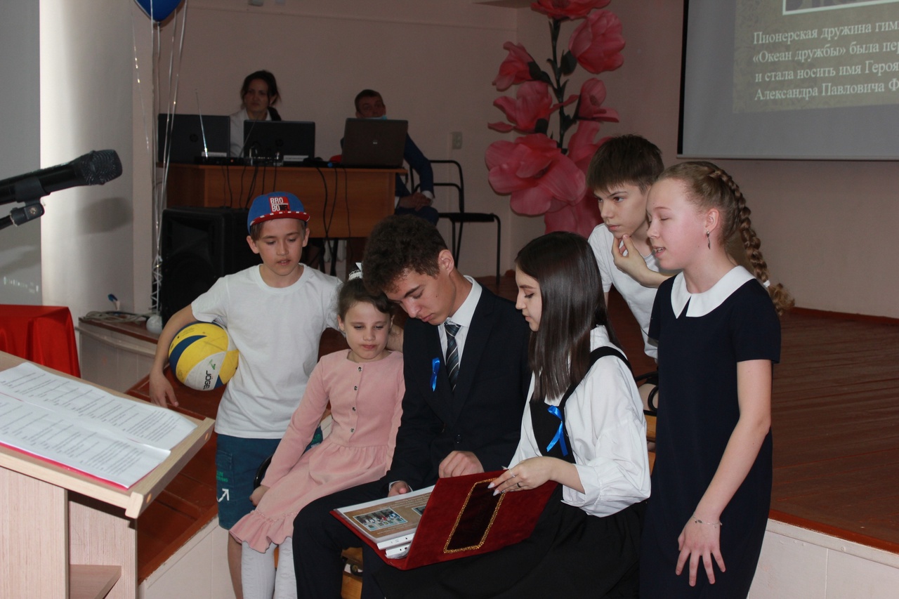 15 апреля прошла научно - практическая конференция "ll Фроловские чтения",посвященная Герою Советского Союза Александру Павловичу Фролову. На мероприятии присутствовали заместитель главы Администрации МР Альшеевский район Султангулов А.Т., начальник отдела образования Чупова З.А., дочь А.П.Фролова Голуб Л.А., доктор филологических наук Карпухин И.Е., председатель морского собрания Альшеевского района Антоненко И.Е., председатель местного отделения "Боевое братство" Тухватуллин Б.Ф., директор Дома пионеров и школьников Самойлова Н.А., глава Казанского сельсовета Юмагузин В.Ф., ветеран педагогического труда Гончарова Н.Н., директора и заместители директоров школ с. Раевский. Особыми гостями конференции были представители школы с. Заворонежское Мичуринского района, Тамбовской области, которые подключились по видеосвязи. Открыли конференцию учащиеся театрального коллектива гимназии "Рампа" с постановкой "С чего начинается Родина?" Важным событием стал видеосюжет встречи выпускника гимназии, ныне студента Тамбовского государственного университета Карпова Максима с учителями и школьниками с.Заворонежское, где родился и вырос А.П.Фролов. Максим с почтением откликнулся на предложение поискового отряда гимназии и выехал на малую родину Александра Павловича.