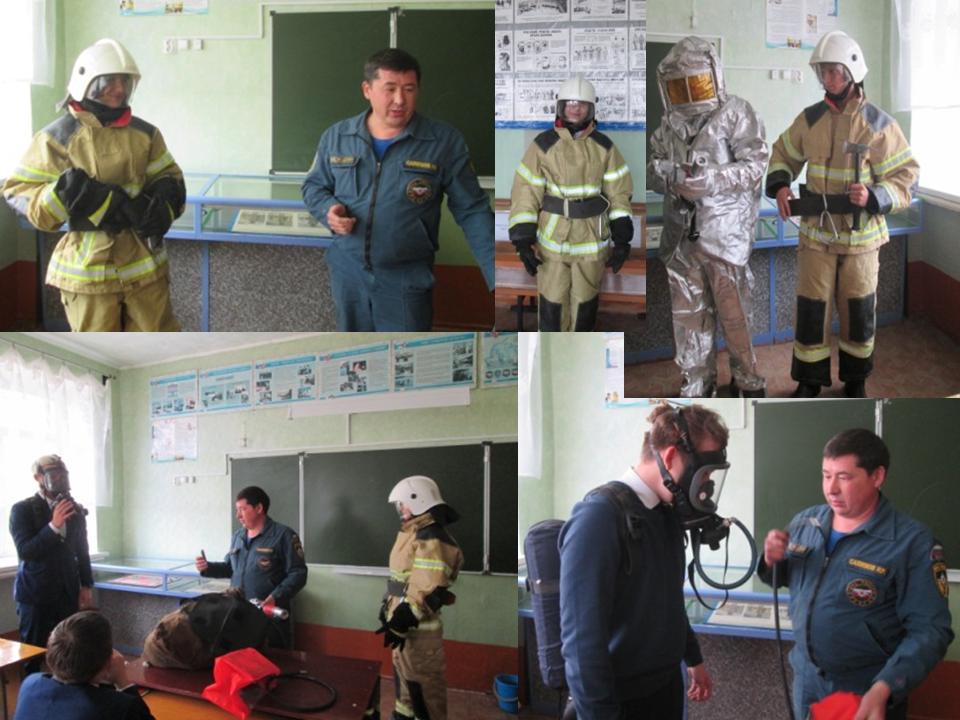 На открытом уроке присутствовал заместитель начальника Пожарной части №62с. Раевский Салимов Ильгиз Рауфович. Он рассказал ребятам об особенностях работы пожарного-спасателя, показал пожарную амуницию, защитные костюмы, экипировку, систему подачи воздуха для защитного костюма. Также Ильгиз Рауфович рассказал о образовательных учреждениях МЧС России, где ведется подготовка будущих пожарных –спасателей для подразделений пожарной охраны.