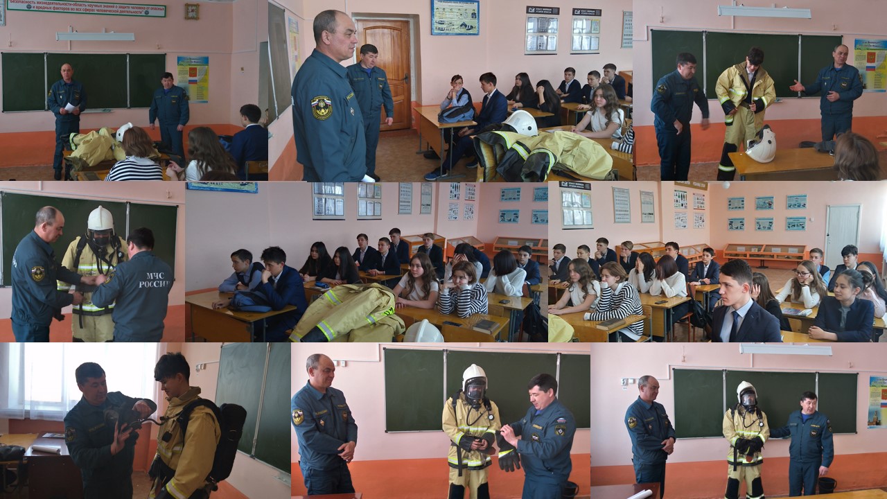 На открытом уроке присутствовали: начальник пожарно-спасательной части №62 с. Раевский Арсланов Венер Мунирович, замначальника Салимов Ильгиз Рауфович. Они рассказали ребятам об особенностях работы пожарного-спасателя, показали пожарную амуницию, защитные костюмы, экипировку, рассказали об образовательных учреждениях МЧС России, где ведется подготовка будущих пожарных – спасателей для подразделений пожарной охраны.